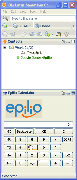 The Calculator plug-in requires Sametime 7.5.1 or later. The plug-in can be installed from the Epilio Sametime Free Plug-ins update site.